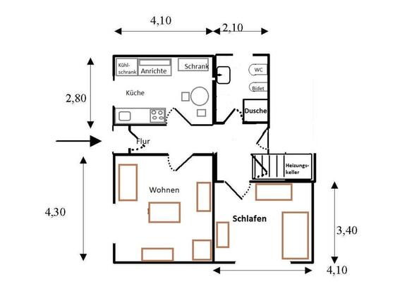 Mehr zum Angebot Einliegerwohnung EG mit separtem Eingang 2ZKB 48 m² möbliert: