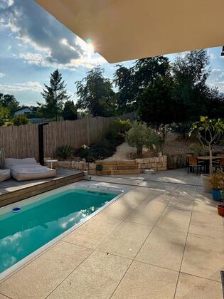 Angrenzend an das Haus befindet sich ein mediterran gestalteter Garten, dessen Highlight ein ganzjährig nutzbarer Pool ist.